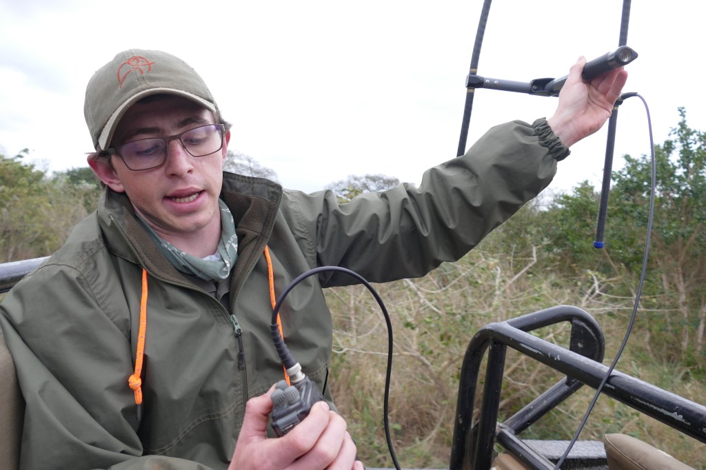 The operator starts by scanning the widest area and turns the antenna in all directions listening for a beeping sound from the receiver. Once they have figured out the direction of the animal, they make the area they are searching smaller (that’s dialing down the gain) to find a more precise position. The size of the area they are searching, th loudness of the beeping, and the direction in which the operator is pointing the antenna will give an approximate position for the animal.