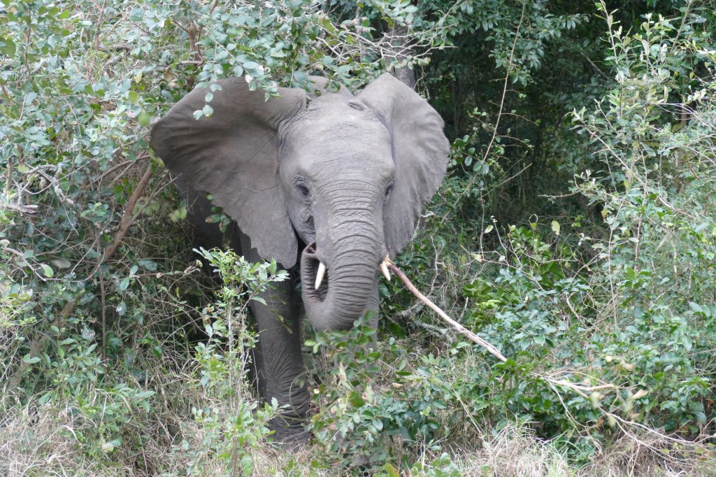 Elephants are clever animals who know where to hide. If they don’t want you to be near them they will disappear. A tree may look too small to hide an elephant, but its colors and position will allow the animal to dissolve into the foliage. Only a very sharp and focused human eye will catch its presence. If the brush is thick, elephants that are only a few meters away become invisible.